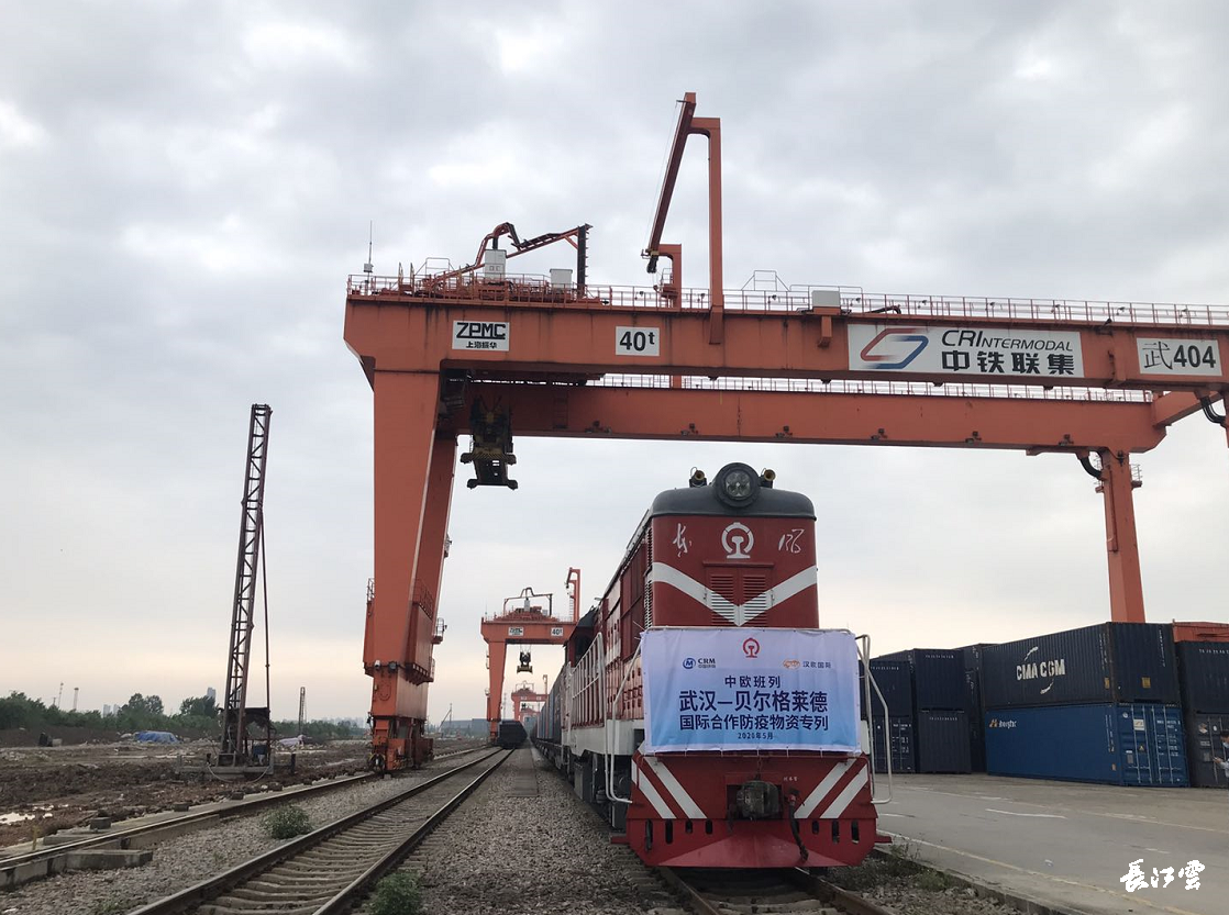 2020年5月9日,汉欧国际“武汉——贝尔格莱德”防疫物资专列于中铁联集武汉中心站首发,途径哈萨克斯坦、俄罗斯、白俄罗斯、波兰、匈牙利等国,预计18天后抵达塞尔维亚首都贝尔格莱德。据了解,这是国内首趟中欧班列防疫物资专列,亦是武汉疫情防控以来开出的第15趟班列,同时也是当天开出的第三列中欧班列。