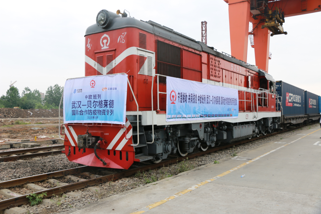 2020年5月9日,汉欧国际“武汉——贝尔格莱德”防疫物资专列发车。班列装载着武汉及周边生产的防疫物资(口罩、防护服、无纺布等),总量50个集装箱约3500方,物资抵达贝尔格莱德后将分拨至塞尔维亚各地,用于疫情防控工作。