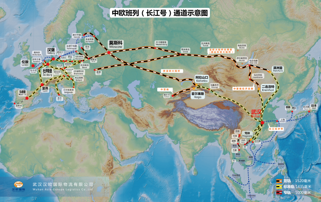目前,中欧班列(长江号)已形成途经新疆阿拉山口、霍尔果斯,内蒙古二连浩特、满洲里,广西凭祥,云南磨憨六个口岸进出境的格局,拥有30条稳定的跨境运输线路,辐射欧亚大陆34个国家、76个城市,境外服务面积达3000万平方公里;公司在德国汉堡、波兰华沙共有合作仓库7个,各仓库面积2000-4000平方米不等,班列国外段服务能力显著提升,配送时长较之前节省三分之一左右,赢得了客户的认可。