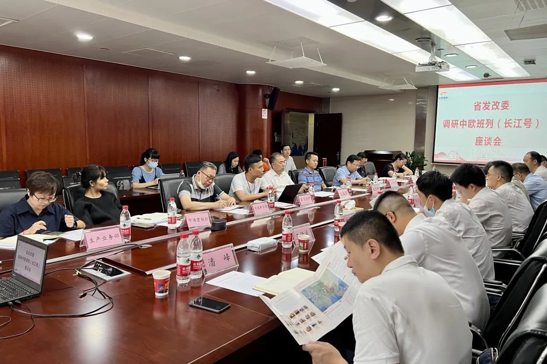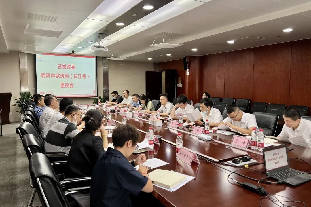 7月7日,省发改委党组成员、副主任,省援疆工作前方指挥部党组成员、副总指挥刘正斌带队,赴汉欧国际就中欧班列(长江号)目前运营情况进行调研座谈。汉欧国际党委副书记、总经理江瑞华参加座谈。