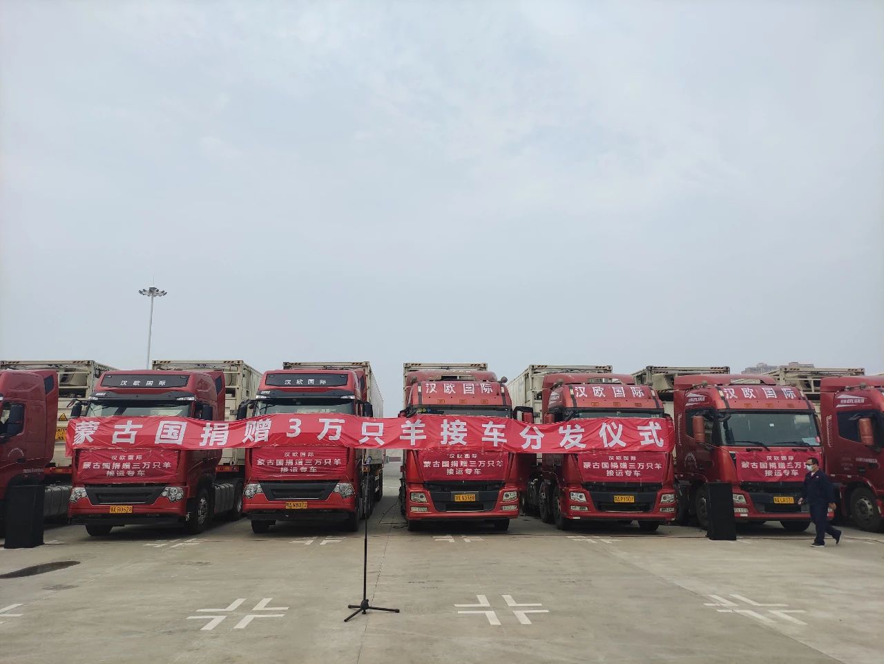 11月20日下午15时,湖北省商务厅举办了蒙古国捐赠羊接车分发仪式,正式宣布:近日,由蒙古国捐赠的首批11267只羊已运抵武汉,湖北人民收下这份温暖的礼物,衷心感谢蒙古国政府和人民的深情厚谊。