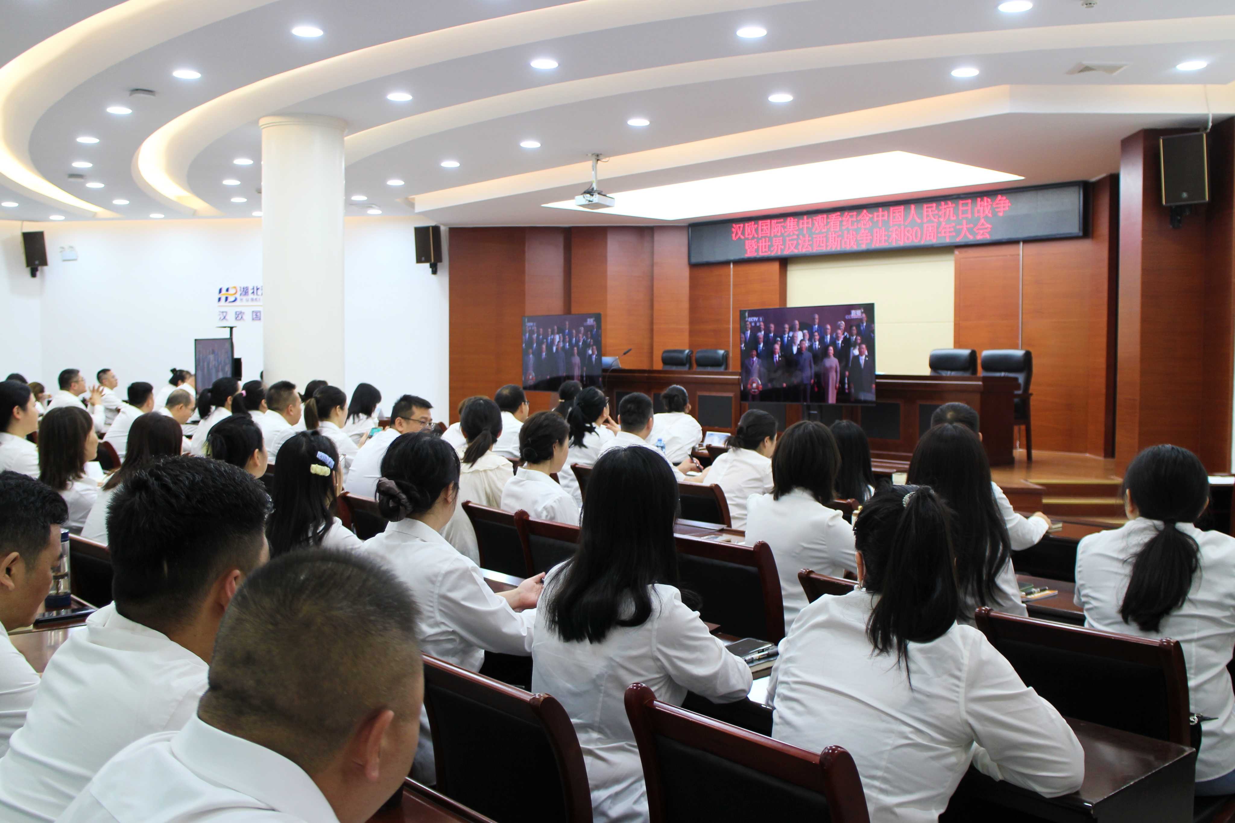 9月3日上午,纪念中国人民抗日战争暨世界反法西斯战争胜利80周年大会在北京天安门广场举行。为铭记历史、缅怀先烈、珍爱和平、开创未来,深刻感受国家富强,民族振兴的宏伟气象,汉欧国际组织全体干部员工集中观看大会盛况,共同见证重大而庄严的历史时刻。